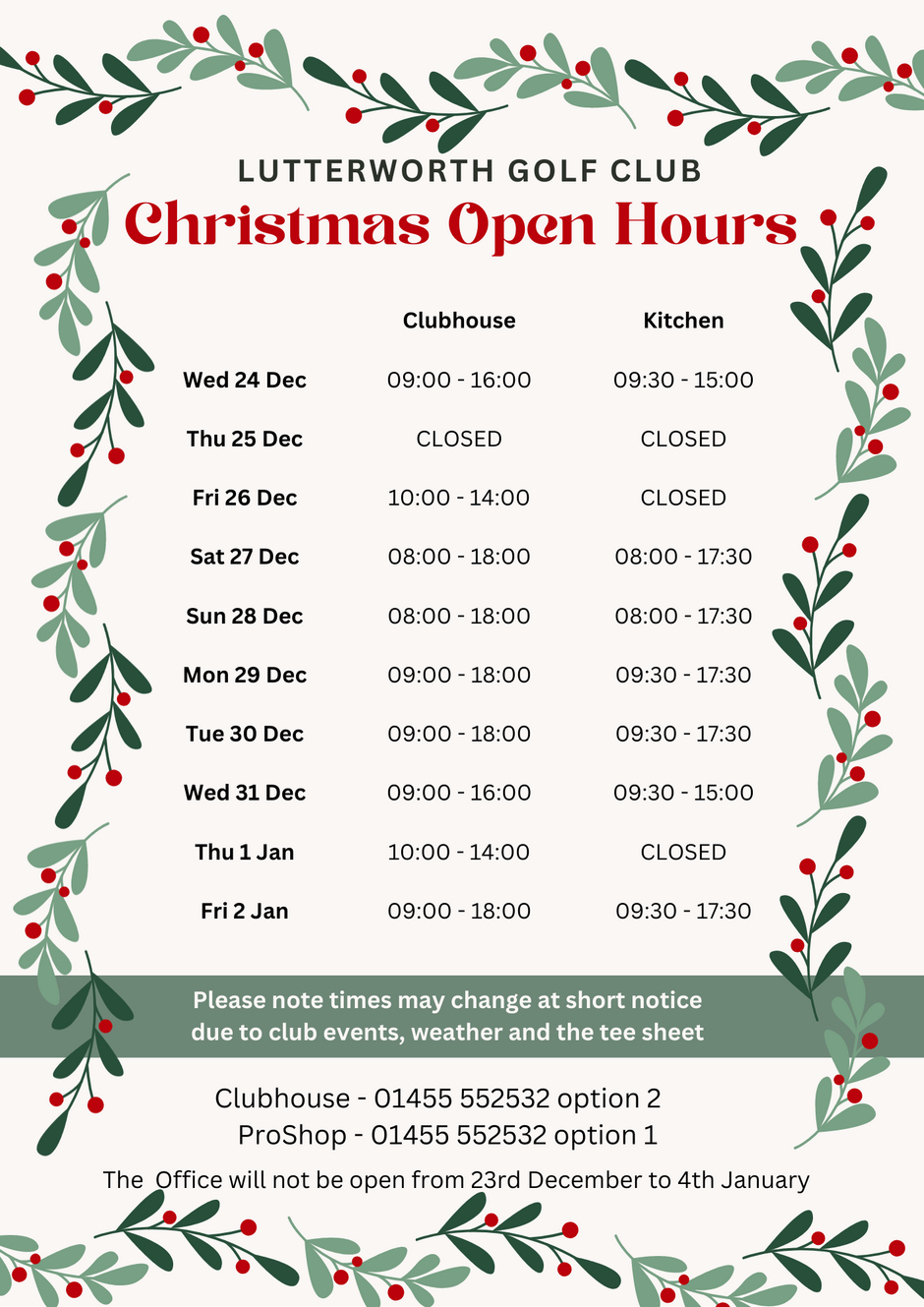 Christmas 2025 opening hours
